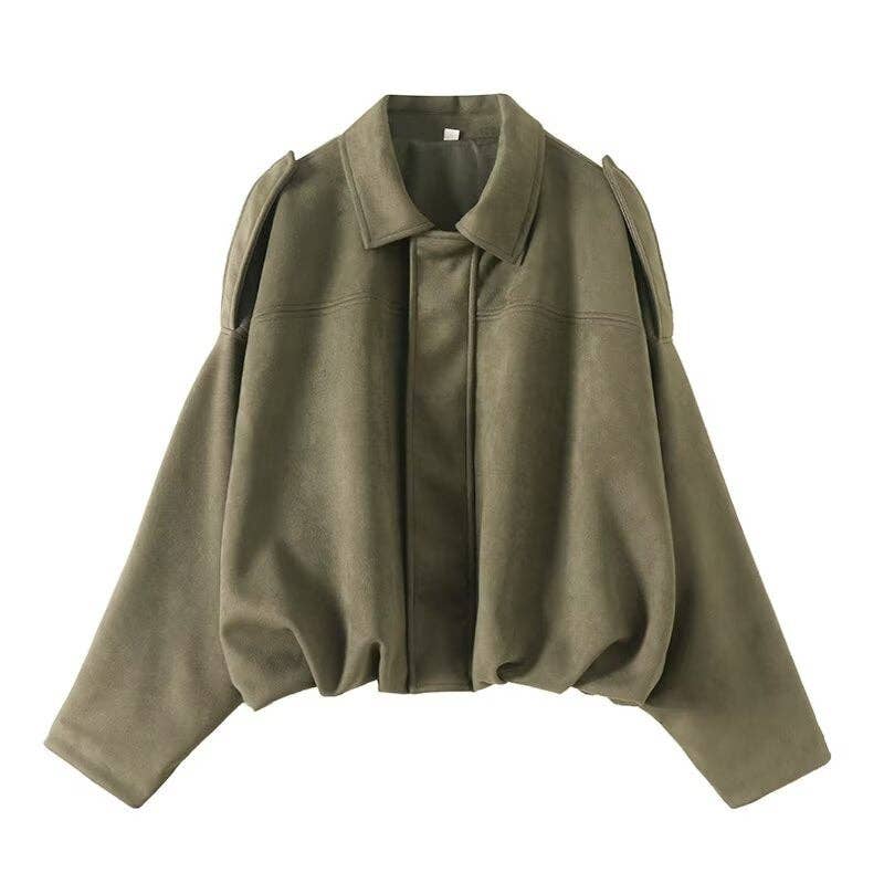 Dit trendy jack combineert stijl en comfort op een perfecte manier. Het luxe suède materiaal voelt heerlijk aan, terwijl de gefronste onderkant een speelse touch geeft aan de bomberstijl.